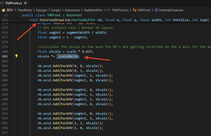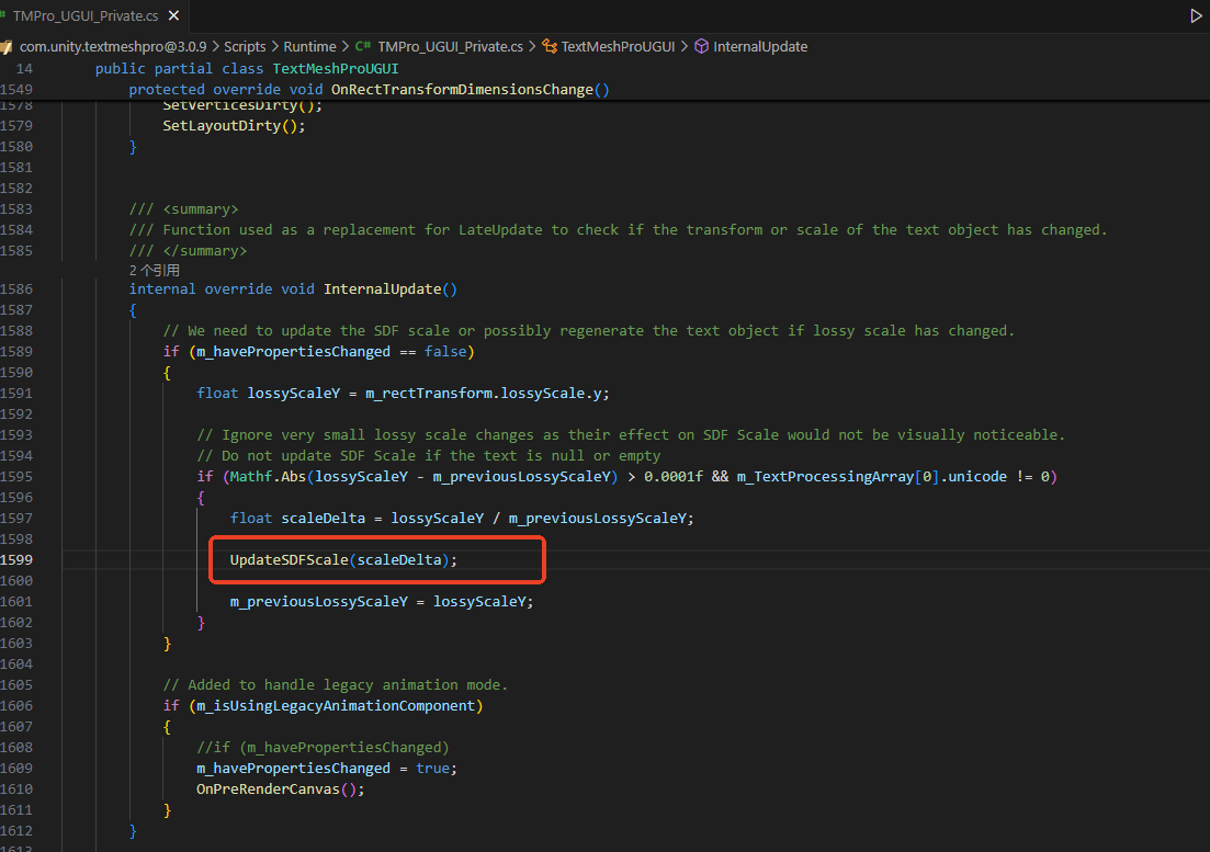 因为这个问题翻看了一下实现,对比了一下unity官方的TMP处理代码,发现SDK里边调整SDF缩放的时候,没考虑进去组件本身的缩放因素。